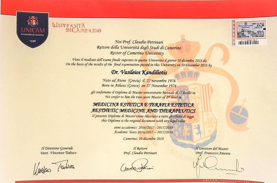 Αποκτήσαμε το Master αισθητικής ιατρικής για τον ιατρό μας κ.Κανδηλιώτη Βασίλη.
